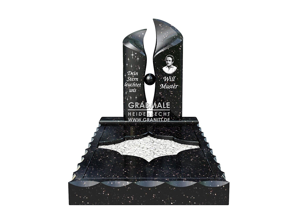 Einzelgrab mit Foto / Bild / Portrait, Natursteinmuster: Indian Black / Star Galaxy, Star Galaxy / Orion