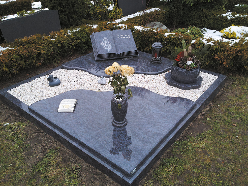 Doppelgrab mit Einfassung und Teilabdeckung, Familien Grabstein, Liegestein, Natursteinmuster: Orion
